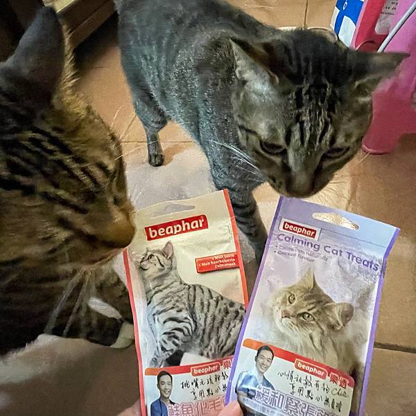 才拿出來,毛孩們彷彿知道有好料,立馬就圍了上來,